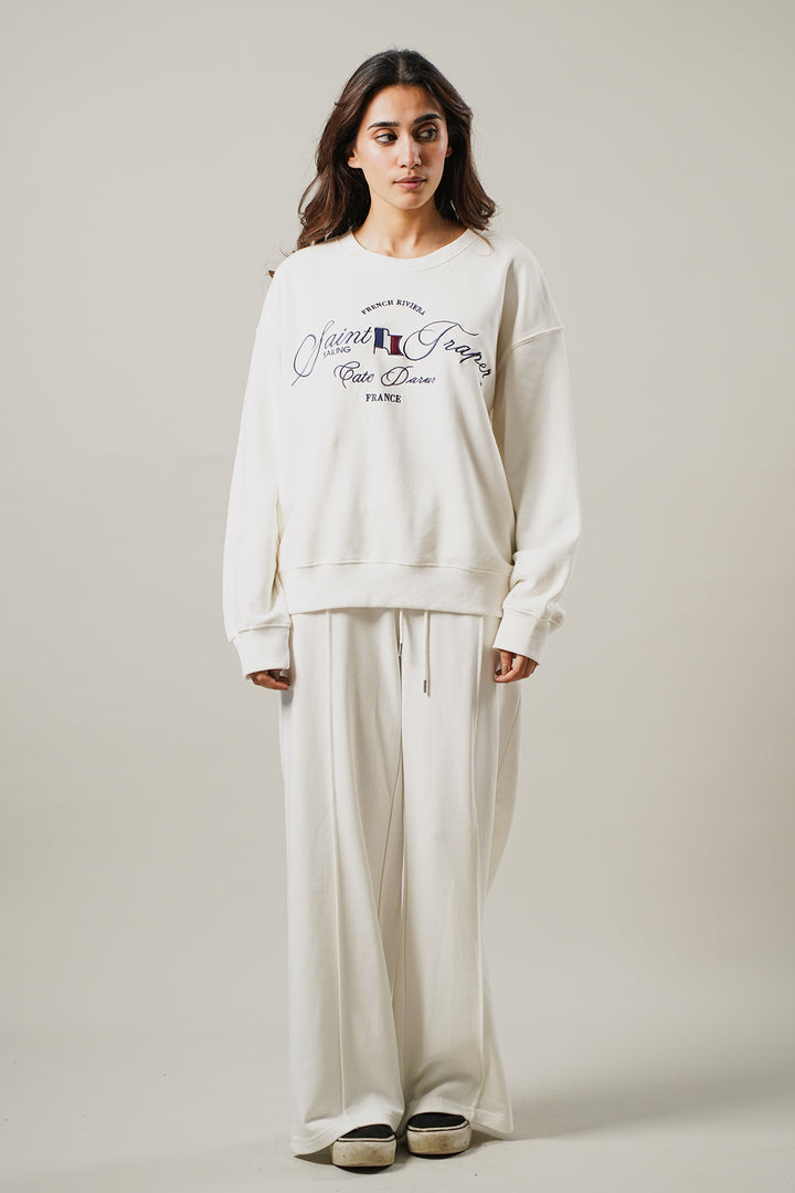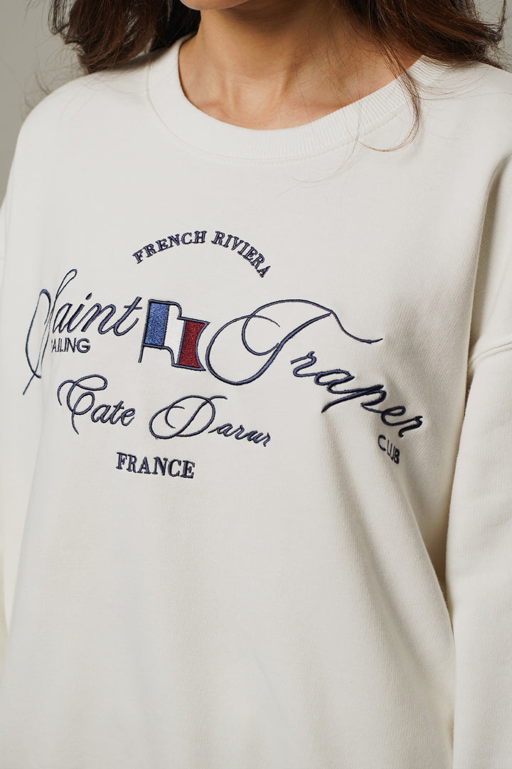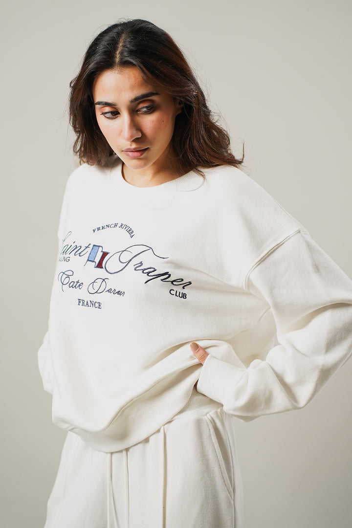 "Transport yourself to the streets of Saint-Tropez with this cozy sweatshirt. The minimalist French-inspired design meets ultimate comfort, making it a wardrobe essential. Pair it with sneakers for a relaxed yet refined look.