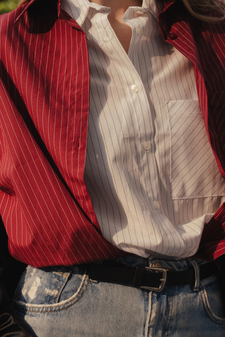 "With subtle stripes and a sharp collar, this shirt screams sophistication. Pair it with trousers or jeans for a winning look.